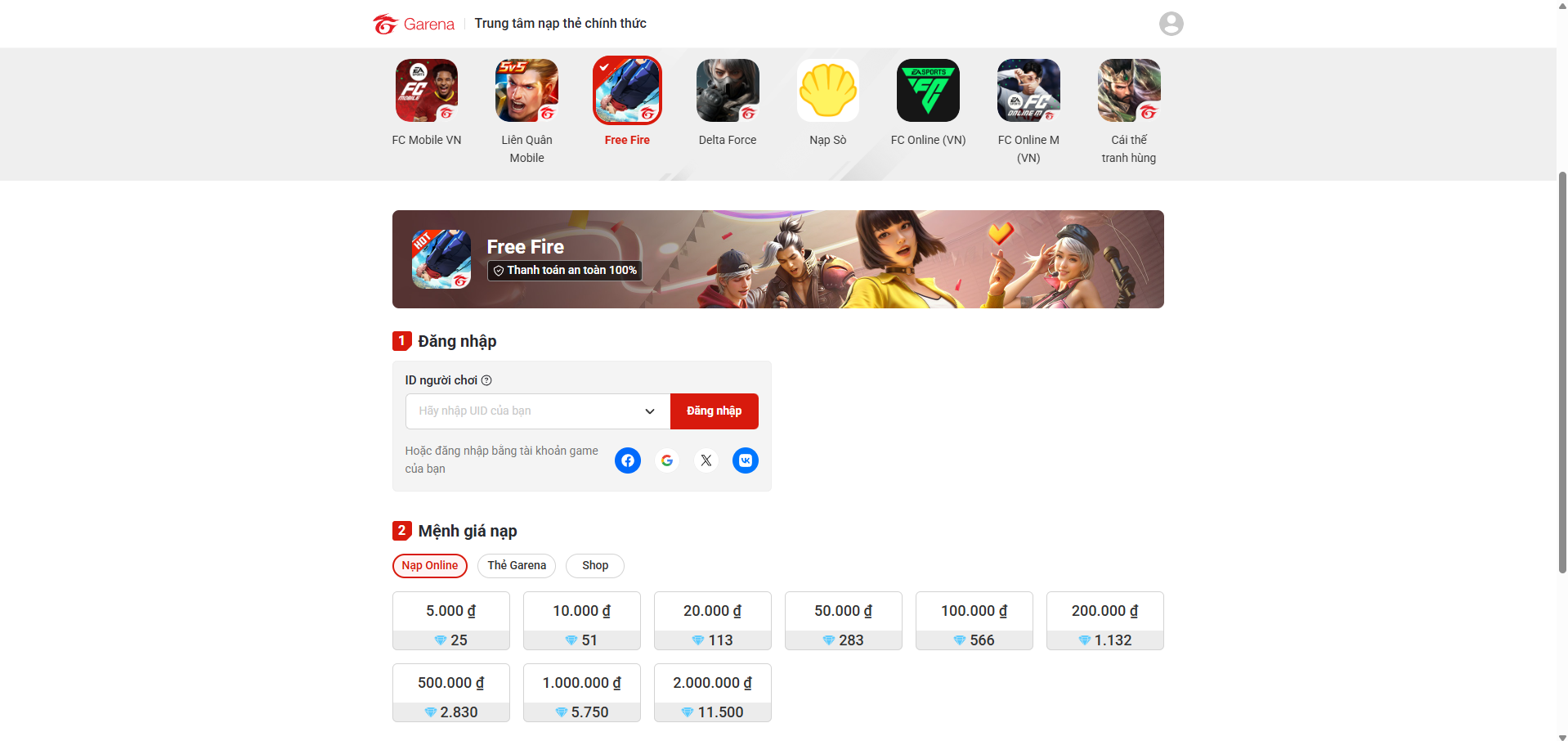 Nạp tiền game, mua thẻ Garena/Zing tự động 24/7, nhận mã ngay.